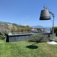 Es wurde ein Skimmer eingebaut und ein Schnelldurchlauffilter mit Kalkkies und einer Sprudelanlage sowie eine energiesparende Messner-Pumpe installiert. Jetzt verbindet er wieder klares Naturpoolwasser mit einem beeindruckenden Blick auf Albaro und die Bucht von Genua.