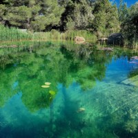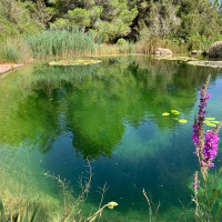 Este estanque de natación invita con sus aguas cristalinas , profundas 3m, y las amplias zonas de plantas subacuáticas para nadar y bucear . A petición expresa del comitente fue creado ninguna separación entre la zona de natación y la zona de regeneración.